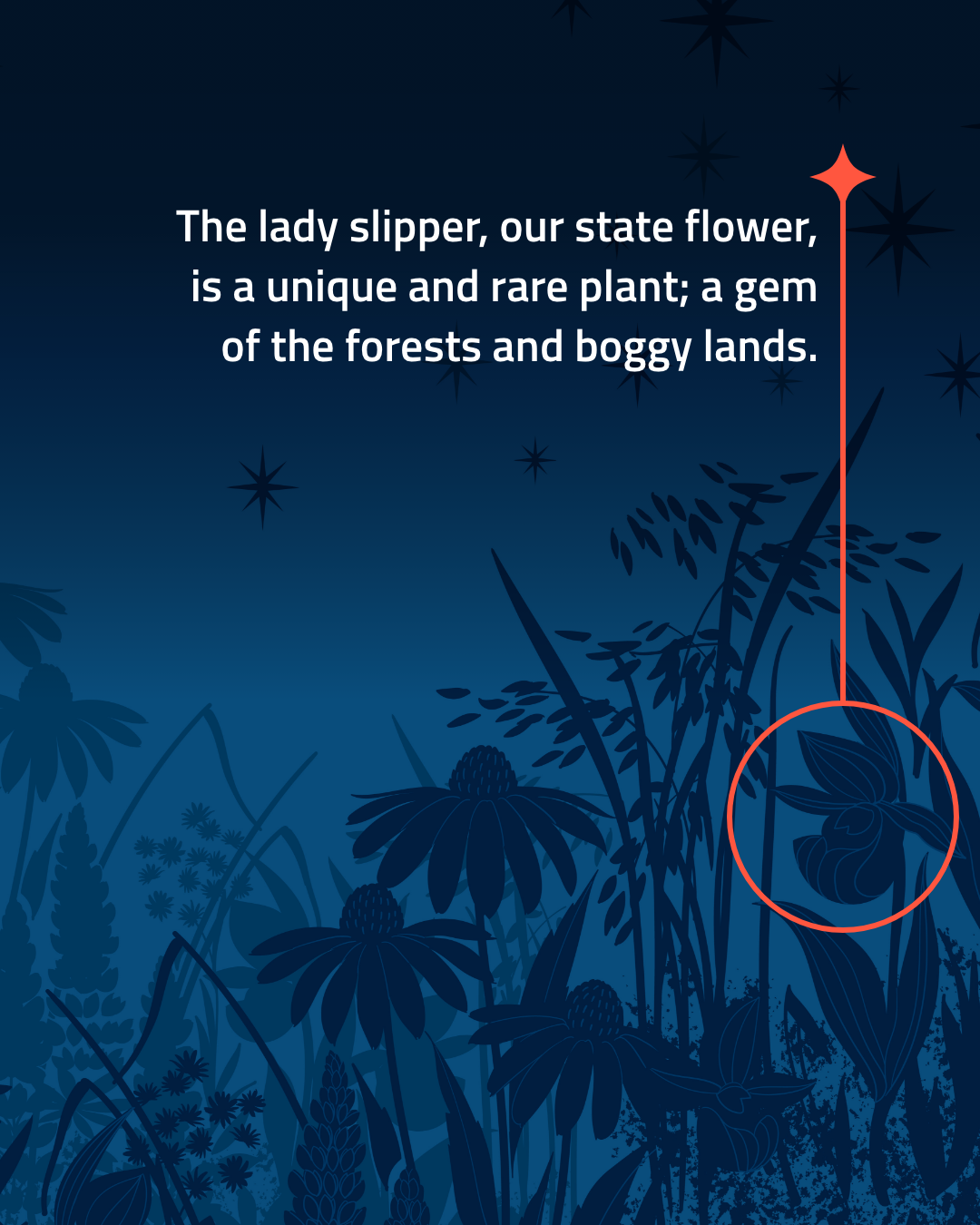 Lady slipper, coneflower, wild rice, and lupine… each plant is native to Minnesota’s landscape. Although they do not grow in the same ecosystems in real life, their combined symbolism is an ode to the strength and diversity of Minnesota.