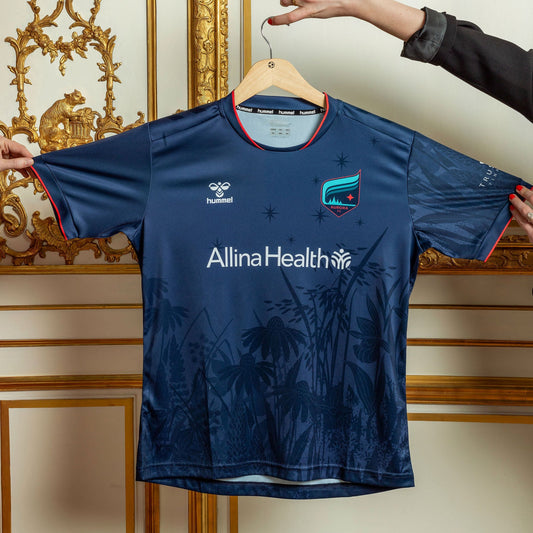 A tone-on-tone color palette, tied in with elements of the night sky, creates a sense of an endless field, and an asymmetrical layout breathes life into a natural and organic design. This jersey is a celebration of the resilience, beauty, and heartiness of the people and the varying landscape of Minnesota.
