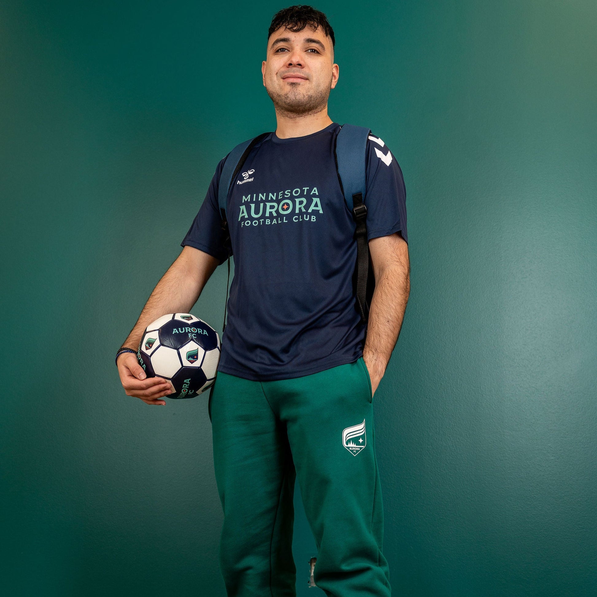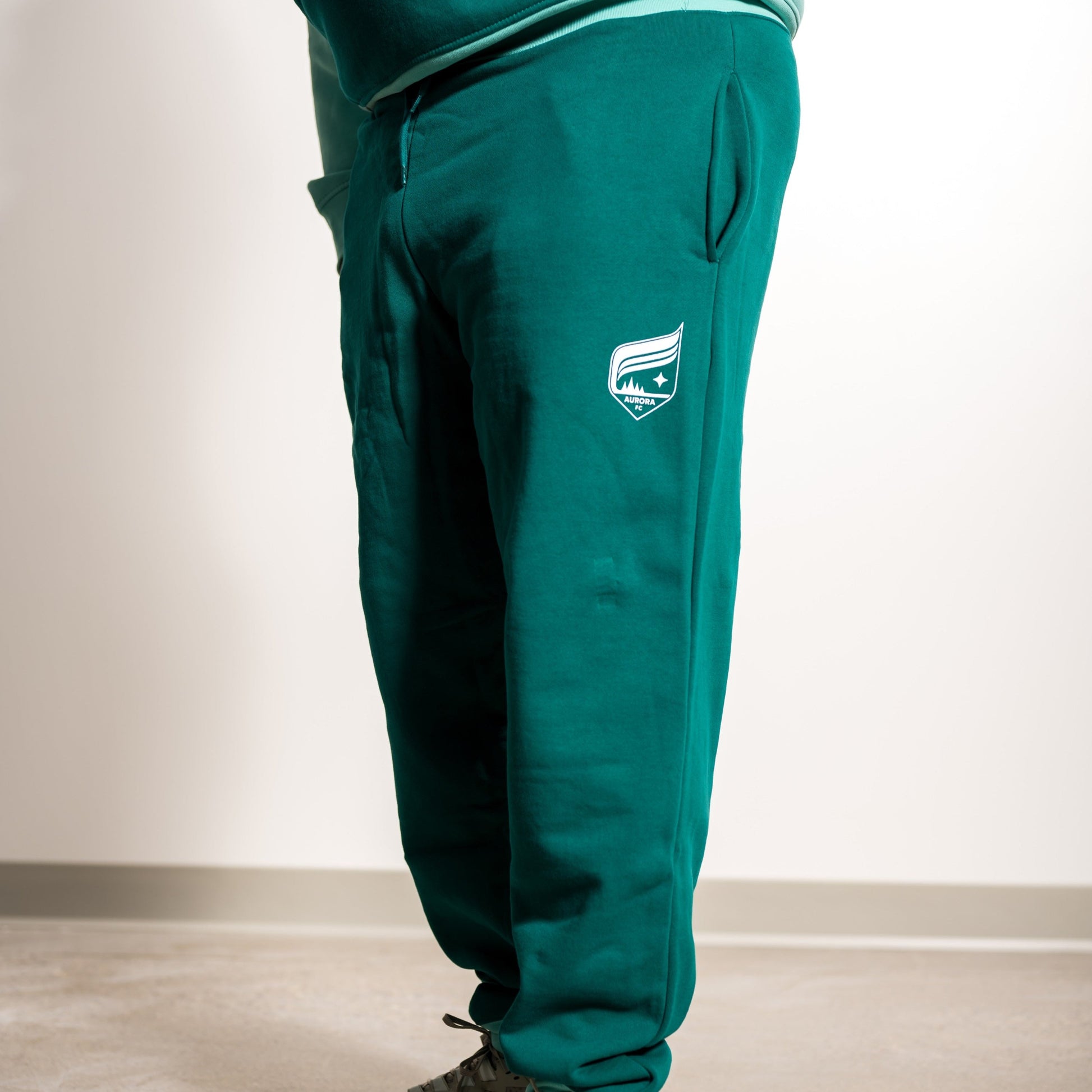 These dark teal sweatpants are your ideal piece for chilly match days and cozy nights in. Featuring the classic Aurora crest, these pants deliver team spirit and comfort. Available in Unisex (Small to 3XL) and Fitted (Small to 2XL), they pair perfectly with your favorite hoodie or tee.