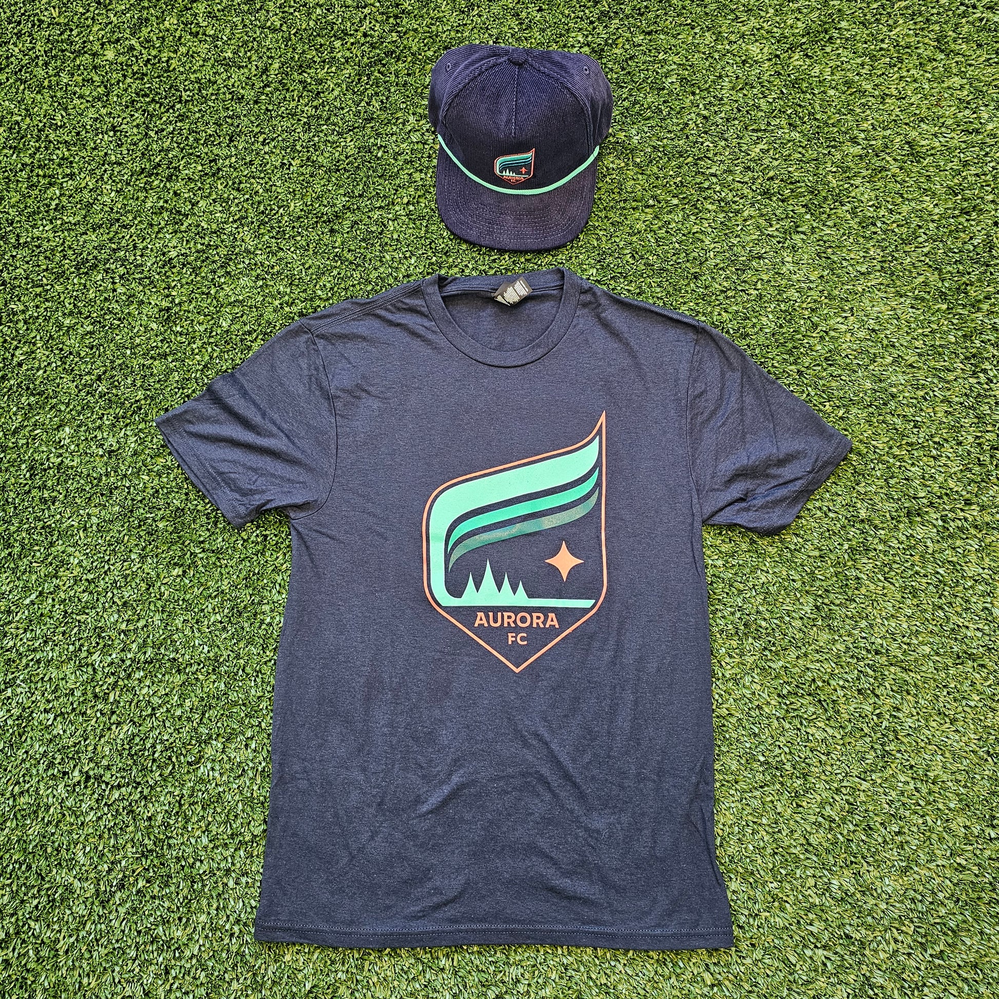 This navy corduroy cap brings vintage flair to your Aurora wardrobe. Featuring an embroidered patch of the classic crest front and center, plus a subtle teal rope detail across the brim, it’s the perfect blend of throwback cool and team spirit.
