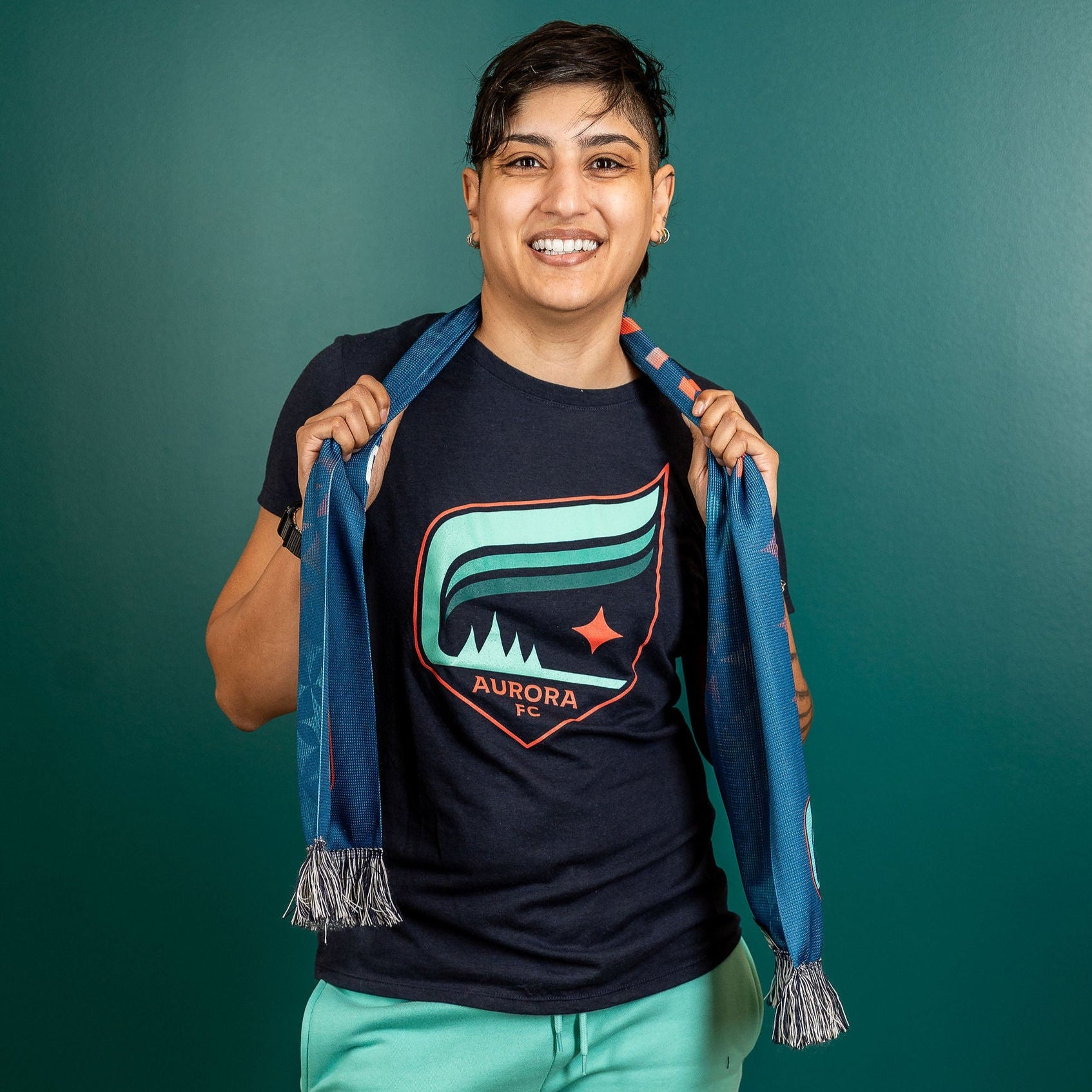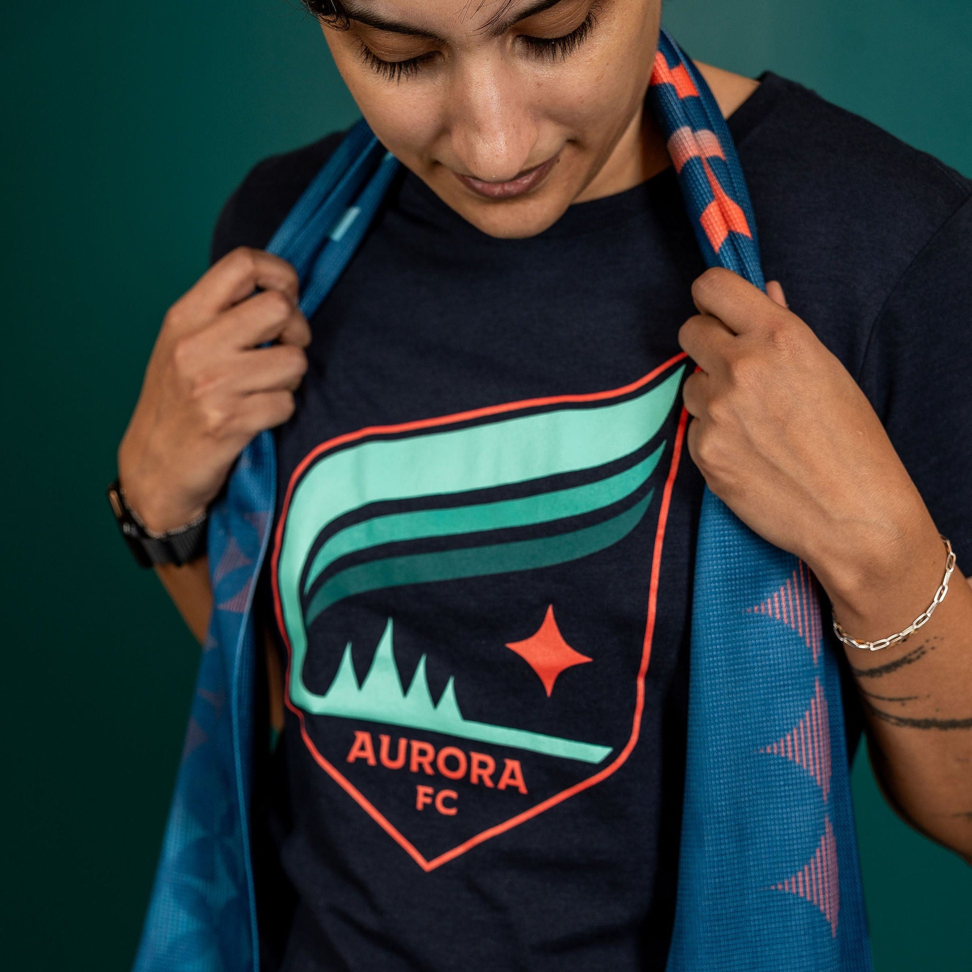 The quintessential piece of apparel for the everyday look. The Aurora Crest t-shirt is the perfect option for any fan. With lightweight, soft fabrics (50% polyester, 25% cotton, and 25% rayon), this t-shirt will become your new favorite (sorry other t-shirts).